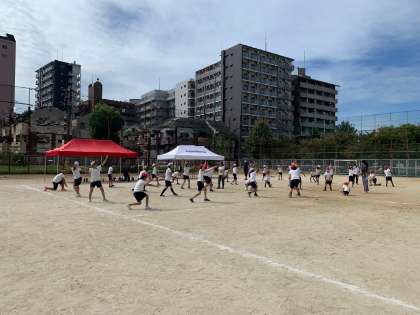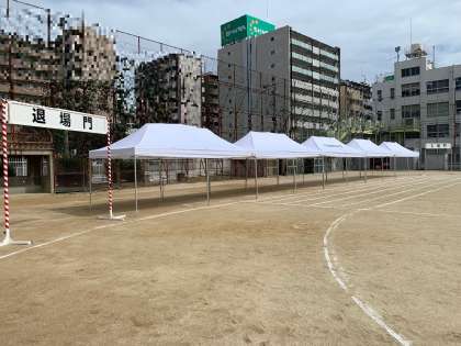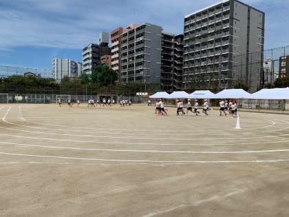 5・6年生が運動会の練習をしています。会場の準備もできてきました。