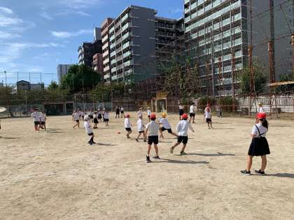 グランドで子どもたちが元気に遊んでいます。