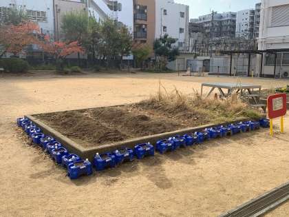 チューリップの球根を植えました。土を敷き詰め、その上に球根を置き、上からふわっと土をかけます。これから水やりをしてそだてていきます。春にはきれいな花をさかせてくれることでしょう。