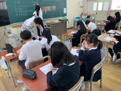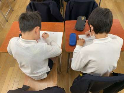 カッターを使い、名前を切り絵でつくります。今日はデザインを考えています。