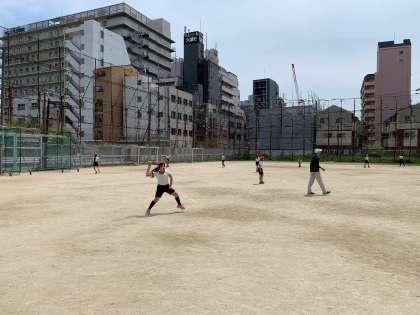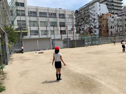 ボール投げです。グラウンドでは、思いっきり投げることができます。