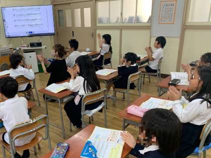 リズムのトレーニングです。リズムに合わせて手をたたいています。