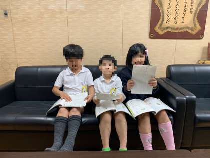 学校ではたらく人にグループでインタビューしました。聞いたことをまとめ、みんなに発表します。