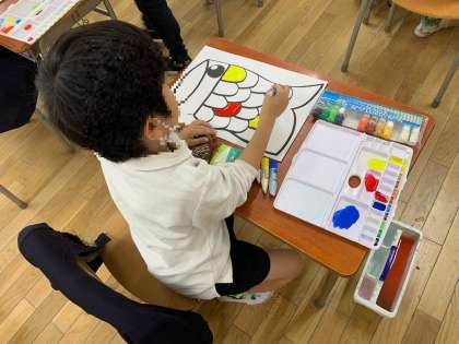 あざやかな色でぬっています。
