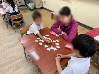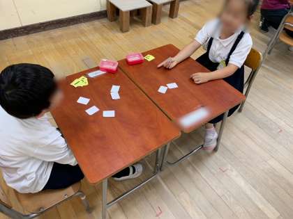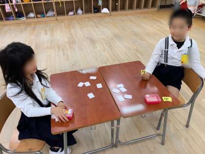 あわせて10になる組み合わせのゲームです。みんな楽しく学んでいます。