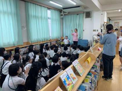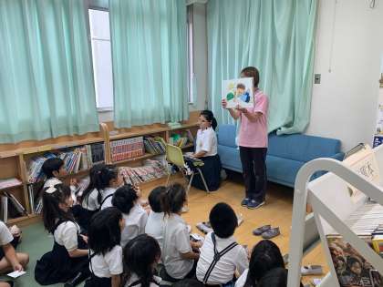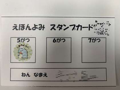 委員会活動の一環で、絵本の読み聞かせです。参加した子どもたちには、えほんよみスタンプカードがくばられました。