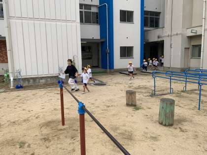 子どもたちには、「おはしも」を意識させて避難訓練をしました。