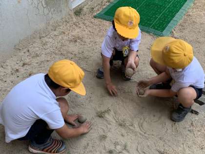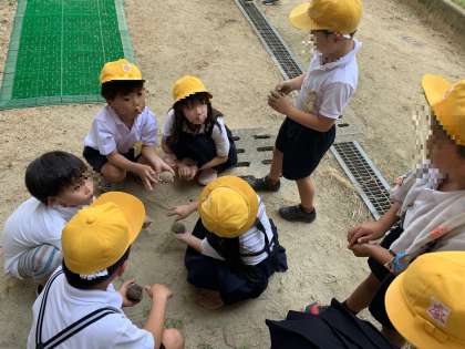だんごづくり。上手に作っています。