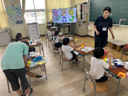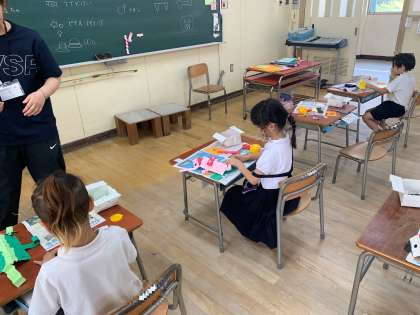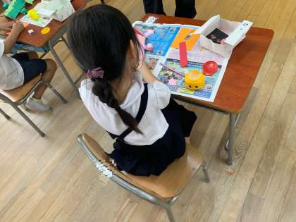 前から作っていた工作がもう少しで完成です。今日は、いろいろなかざりを作りました。
