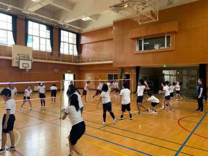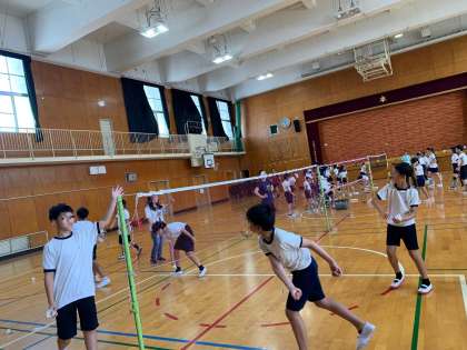 ラケットで打つ前に、シャトルを投げて、シャトルの動きをつかみます。