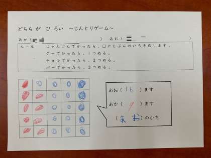 二人でじんとりゲームです。じゃんけんでかったら、マスをぬります。