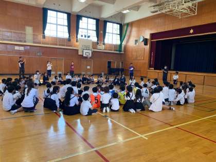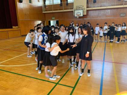 最後まで勝った人に拍手。楽しくなかよく活動できました。体育館の片づけをいつも6年生が手伝っています。