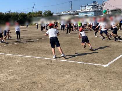 今日は、フレンズカップオブナニワの小学生の部です。大国小学校からは、ドッジボールに5年生4名が参加しました。