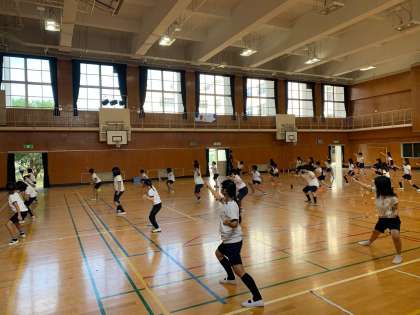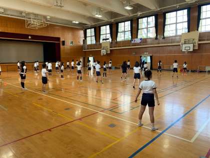 体育館での最後の練習です。次からはグラウンドでの練習になります。