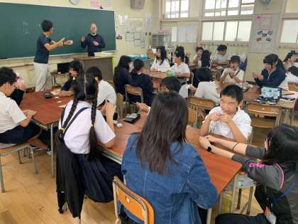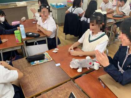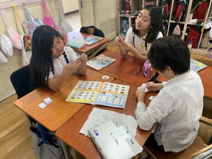 各自が7枚のカードを持ち、英語で職業を言っていきます。他の人は、言われたカードがあれば抜いていきます。最後までカードが残った人が勝ちになります。楽しく英語の学習ができました。