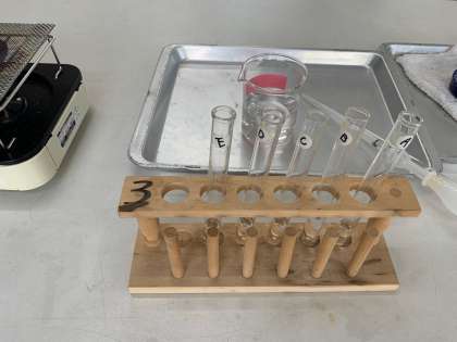 炭酸水・食塩水・重そう水・塩酸・アンモニア水の5つの液体を、見た目、におい等の性質で見分けていきます。