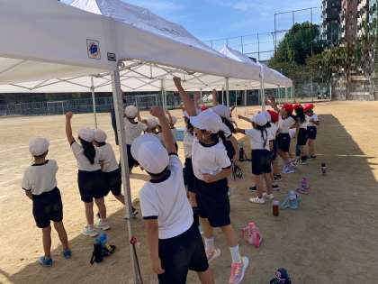 明日の運動会に向けて、子どもたちは一生懸命練習してきました。子どもたちのがんばりに、応援よろしくお願いいたします。今のところ運動会は予定通り実施する予定ですが、明日の朝の天気予報によっては雨用プログラムでするかもしれません。その場合も、朝、雨が降っているとき以外は、予定通りの時刻(午前9時)に開始します。雨用ブログラムで実施する場合は、午前7時30分ごろ、このホームページでお知らせいたします。