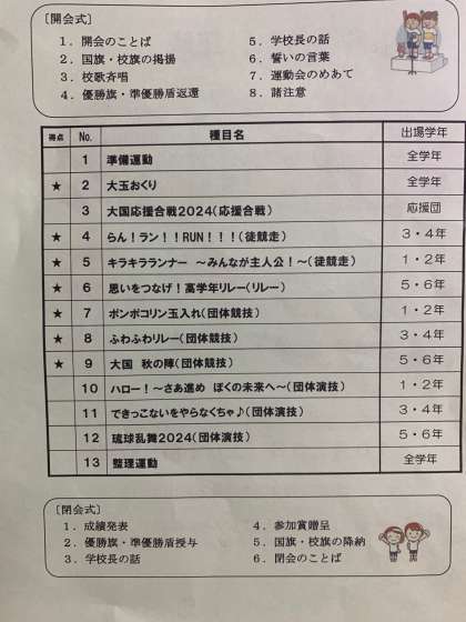 本日の運動会は、予定通り実施します。プログラムに変更はありません。