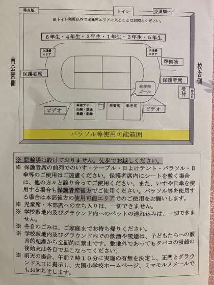 保護者入場は、午前8時30分。開会は午前9時の予定です。