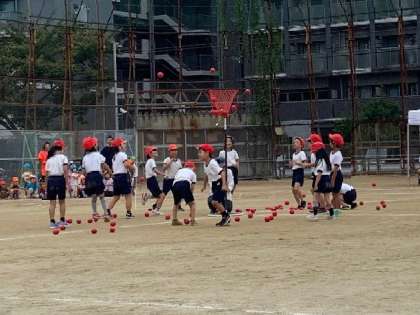 1・2年団体競技 「ポンポコリン玉入れ」2