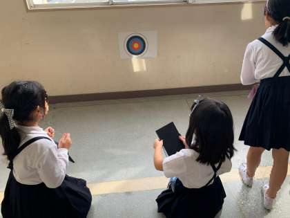 日光をはねかえしたり、集めたりして、光のせいしつを調べています。