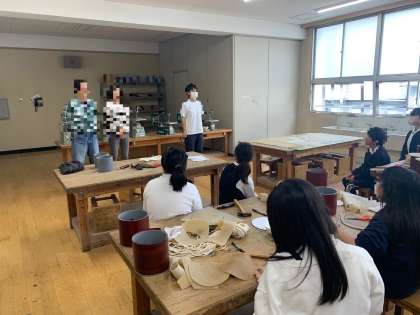 太鼓づくりをいつもていねいに教えてくださっている、近所にある太鼓店の方々です。