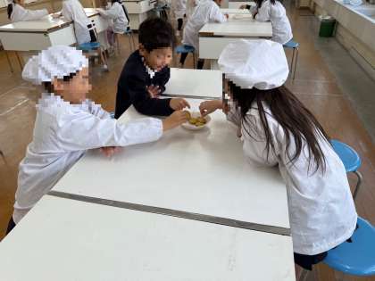 学校の畑で2年生が育てたサツマイモで、おいもパーティーをしました。