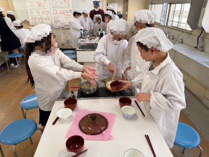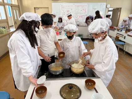 ごはんが炊き上がりました。みそ汁もいいにおいです。