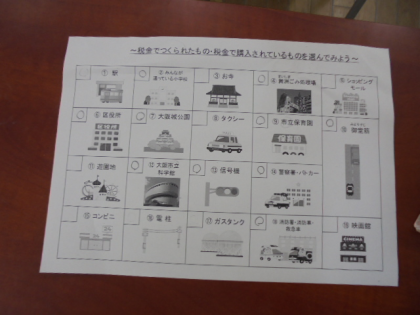 「税金はどのように役立っているのか」、税金で作られているもの・税金で購入されているものと、そうでないものを分ける学習を行い、「税金が無くなるとどうなってしまうのか」をみんなで考えました。