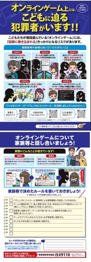 「オンラインゲーム上にはこどもに迫る犯罪者がいます!!」のPDFはこちらです。