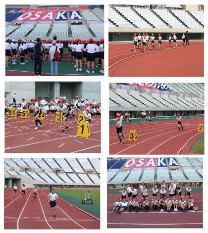 長居陸上競技場でのスポーツ交歓会に6年生が参加しました。他に小学校2校が参加していました。保育所、幼稚園の頃に一緒だった子に久しぶりに出会った子たちもいて、懐かしそうに声を掛け合う姿もありました。大阪国際女子マラソン等国際的な大会でも使用される大きな長居陸上競技場のトラックは、土ではなくウレタン舗装の陸連公認のトラックです。子どもたちは、学校では絶対に走れない100mの直線トラックを走って計測したり、400mトラックを100mずつ走るリレーをしたりしました。力走する子への励ましの言葉が広いスタジアムに何度も響いていました。子どもたちの笑顔いっぱいの和やかな交歓会になりました。