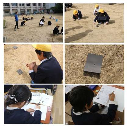 3年生は理科で「光のせいしつ」を学習しています。今日は、校庭に出て太陽の光をレンズで集める実験をしました。レンズで太陽の光を集めて黒い紙に当て、紙の変化を見ました。レンズで集められた光が紙に当たると煙が出てきたり、穴が開いたりしました。子どもたちは声をあげて驚いていました。