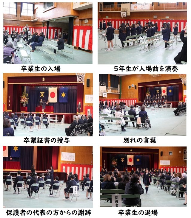 本日、保護者様、来賓の方々、そして、在校生代表の5年生に見守られながら25名の児童が大国小学校を旅立ちました。6年間に子どもたちは大きく成長しました。それは、子どもたち自身の努力、周りの方々の支え、そして、仲間の支えによって生まれた成長です。中学校でも、新しい出会いを大切にし、未来へ向かって歩んでいって欲しいと思います。