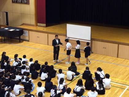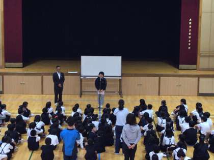 10連休明けの児童朝会は、新しく来られた先生の紹介から始まりました。