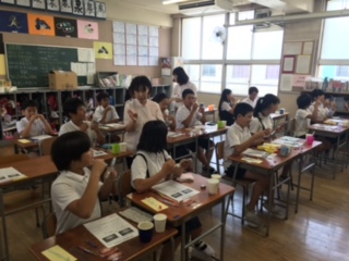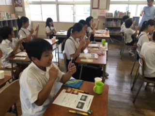 本日、6年生は、5時間目に歯磨き指導を受けました。虫歯や歯周病について詳しく先生方に教えていただきました。子どもたちは自分の口を大きく開けて歯垢をチェックし、正しい歯ブラシの使い方や歯の磨き方を教わりました。