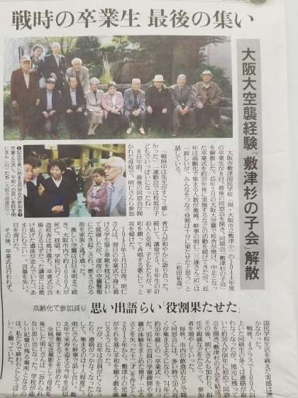 戦後散り散りばらばらになった同期生が連絡を取り合い、昭和43年には50 名近くが再会して、敷津小学校で「30年後の卒業式」が行われ新聞各紙でも紹介されました