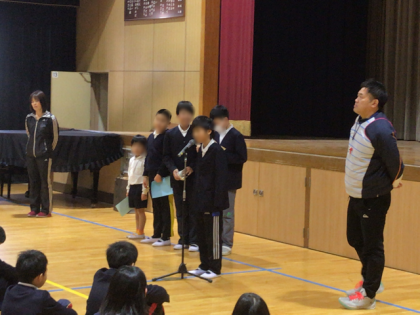本日の児童朝会は、1月生まれの人によるスピーチから始まりました。