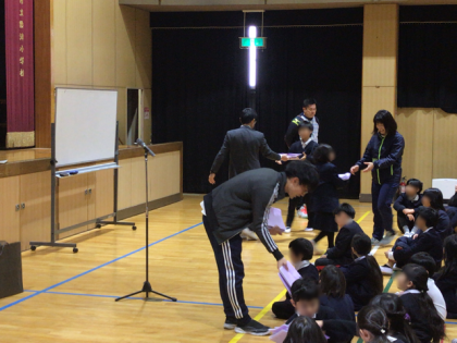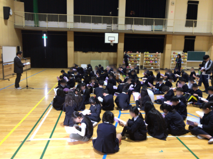 そのあとは、校長先生から新しい暗唱詩文集が配られました。