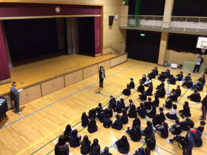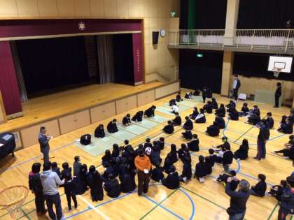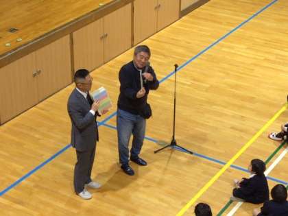 本日の児童朝会では、百人一首大阪市大会を控えた参加メンバーの技を児童全員で見ました。その手の速さにびっくりした子も多いようでした。