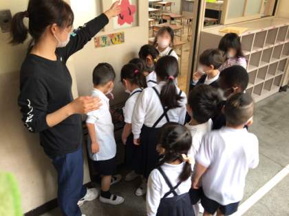 3年生では青虫を観察しました。集まって見ることができないので、担任の先生が子どもたちの机を回っての観察でしたが、嬉しそうな声が教室にあふれました。