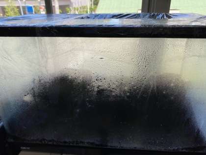 さて、今日の水そうはなんと内側に水てきがびっしり!