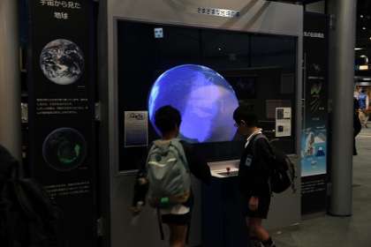プラネタリウムが終わると、展示場での学習はグループ活動でした。いろいろな実験装置を操作したり、工夫された展示などから、科学の面白さを学びました。他校の児童たちとごちゃ混ぜの中、順番に譲り合ってなどのマナーを守ることもできました。