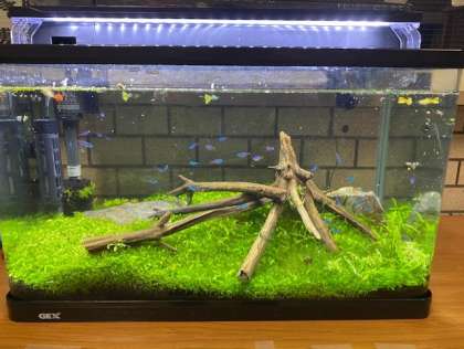 敷津小学校の玄関に、熱帯魚の水槽を置いて3週間がたちました。ある朝、グッピーたちに朝ご飯をあげていると、なんだか小さな生き物が水槽の中をうごめいているではありませんか!なんとグッピーが赤ちゃんを産んでいました。全部で15〜6匹はいるかと思います。子どもたちは熱帯魚が大好きで、毎日多くの子どもが水槽をながめています。赤ちゃんがすくすくと育ちますように!