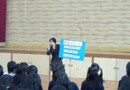 百人一首大会の表彰や、各クラスの代表によるスピーチがありました。