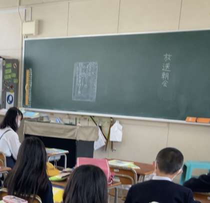 本日の児童朝会では、校長先生から敷津小学校出身の有名人についてのお話がありました。