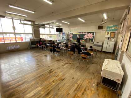 左の写真は1年生の教室です。