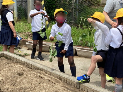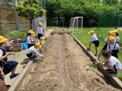 オンライン学習は視覚と聴覚を刺激します。苗植えは、触覚も嗅覚も刺激してくれます。(子どもによっては味覚も・・・)
