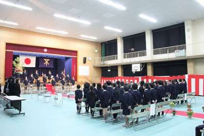 練習では心配な場面がたくさんありましたが、堂々と卒業証書を受け取り、「喜びと別れの言葉」を在校生と掛け合い、涙をこらえながら「旅立ちの日に」や最後の校歌を歌い切りました。