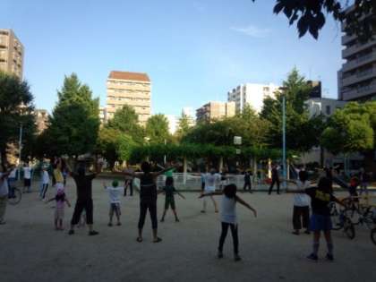 ラジオ体操には全校児童の4分の1の子どもたちが参加しています