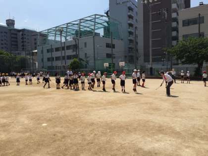 1人ずつ跳ぶのをどんどん続けるクラス、みんなで「せーの!」と跳ぶクラス、「郵便屋さん」を歌いながら楽しんでいるクラスなど、運動場いっぱいににぎやかな声が響いていました。